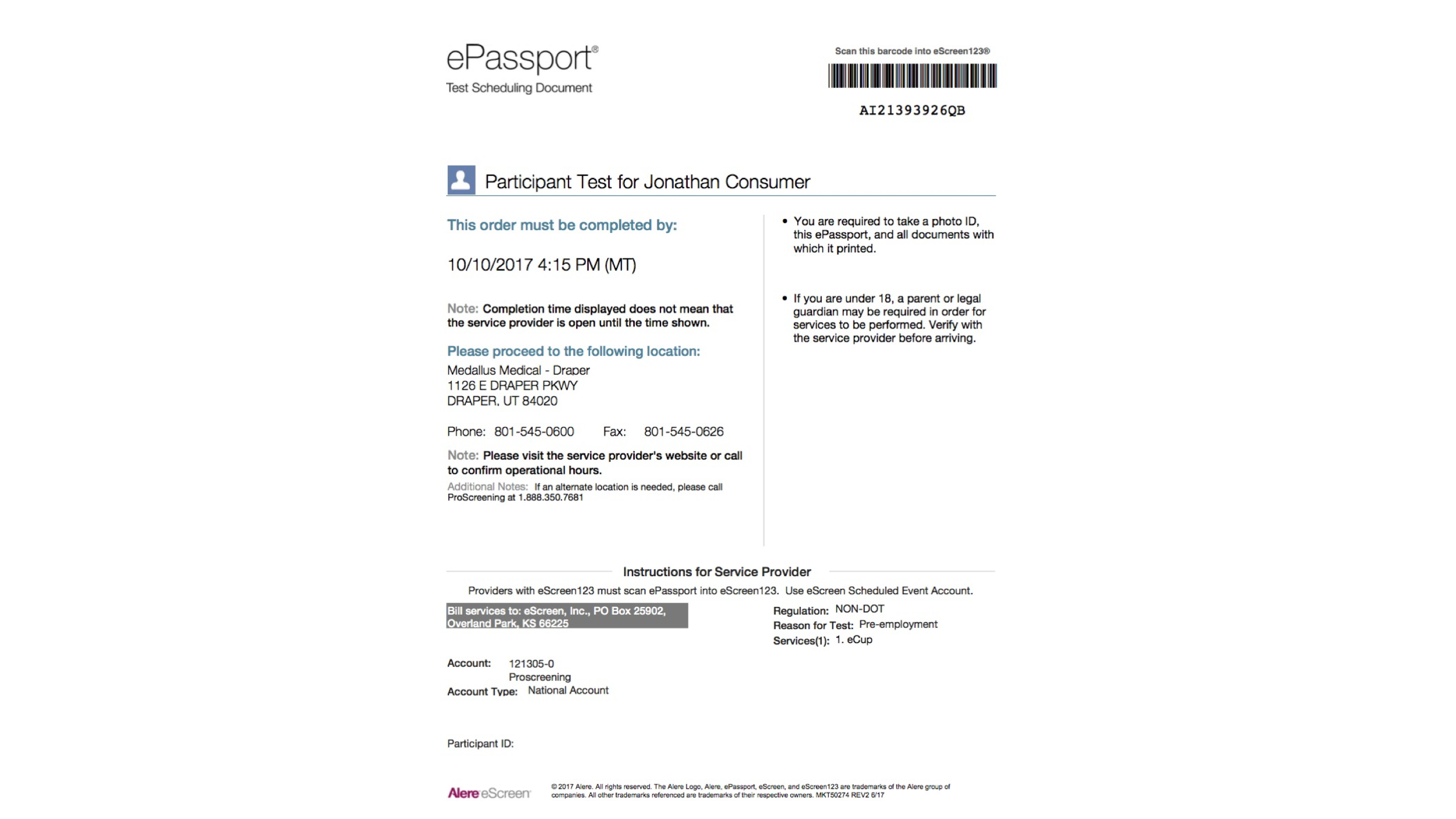 If the donor would like to go to an alternate clinic, they can contact ProScreening customer service to request that the test be scheduled at a different clinic. If an alternate in-network location is available, ProScreening will schedule the test at the alternate clinic.